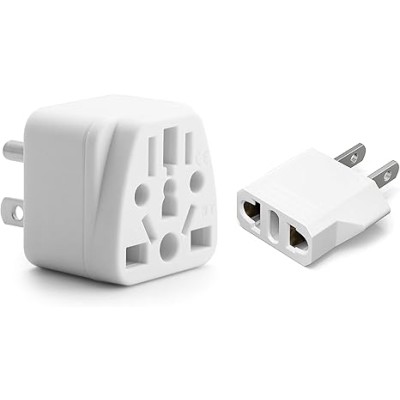 European to American plug adapter, (Type A and Type B), wall socket power charger converter (white)