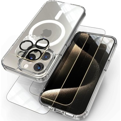IPhone 15 Pro transparent phone case, [compatible with Magsafe] [anti yellowing] [screen protector+camera lens protector]