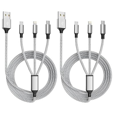 Multifunctional Charging Cable (2-piece, 4-foot) 3-in-1 Nylon Braided Multifunctional Charging Cable